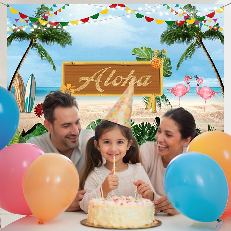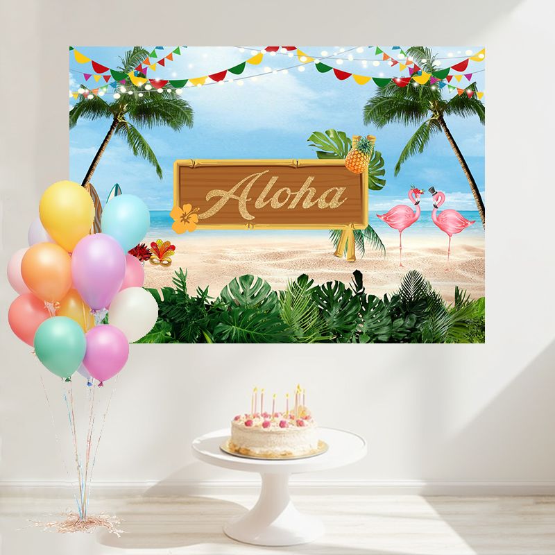 Layoris Aloha Coconut Tree Beach Flamingo Birthday Backdrop
