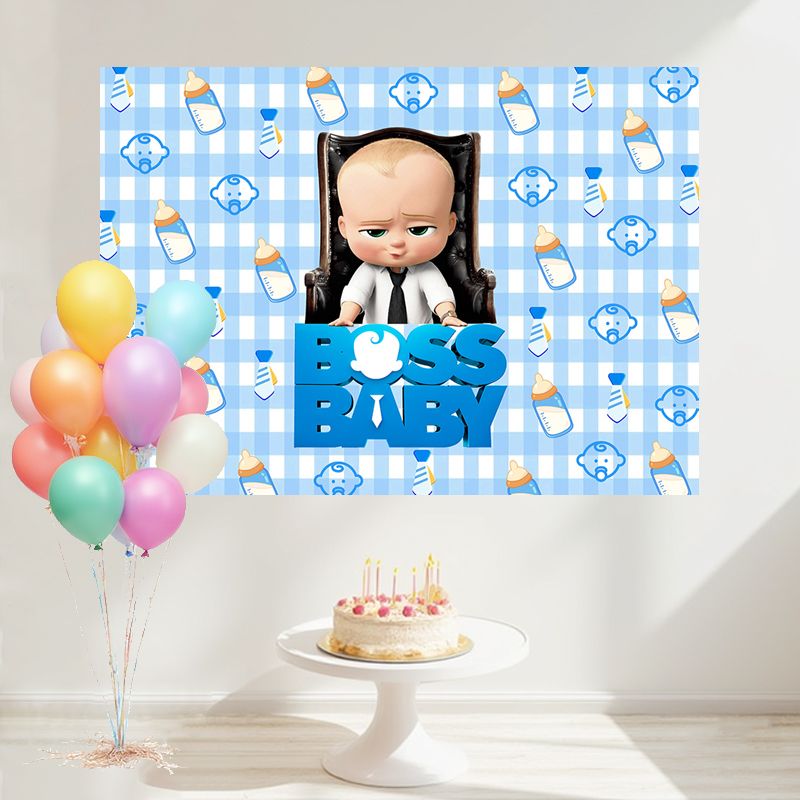 Layoris Boss Baby Blue Plaid Bottle Birthday Backdrop