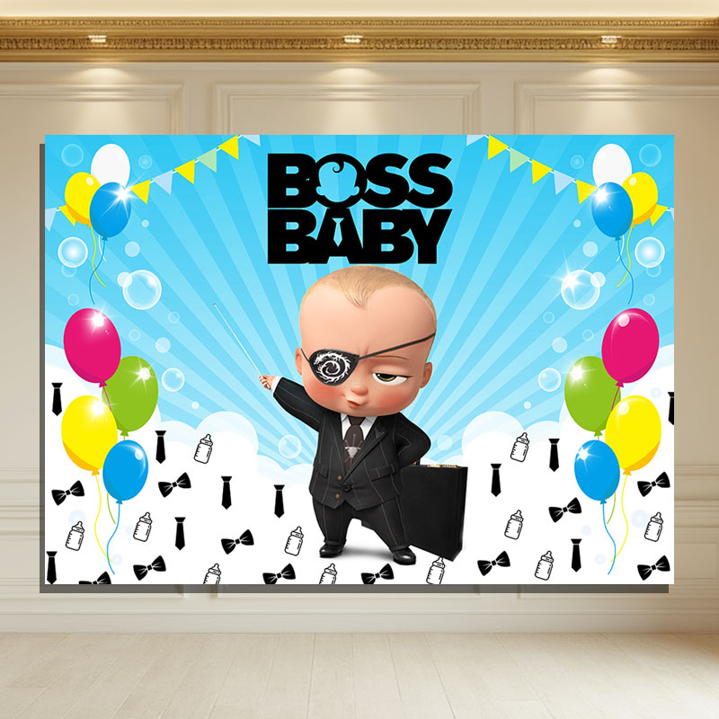 Layoris Boss Baby Cartoon Balloons Birthday Backdrop