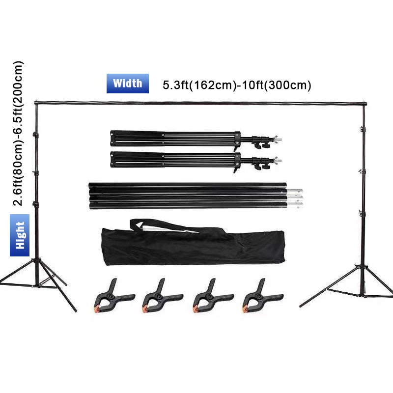 Package Included: 3x Crossbar, 2 x Tripod, 4 x Background Clip, 1 x Carrying Bag