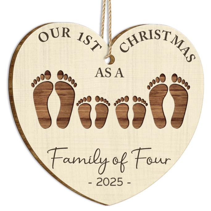 Celebrate your family’s milestones with the First Christmas As A Family Of Four Footprints - Personalized Custom Shaped Wooden Ornament. Offering a joyful way to commemorate special moments, this ornament makes a perfect gift for grandpa, grandma, Husband, Wife, mom, dad, kid, daughter, and son on Mother’s Day, Father’s Day, Thanksgiving, Christmas, birthdays, and anniversaries.