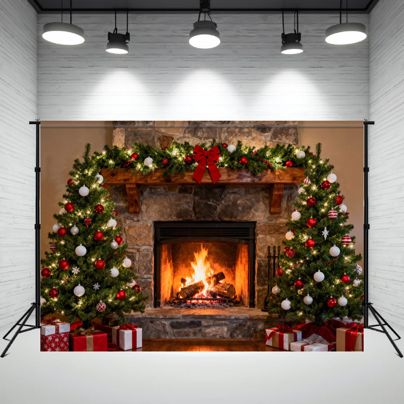 Layoris (7 Days Delivery) Fireplace Christmas Tree Holiday Party Backdrop