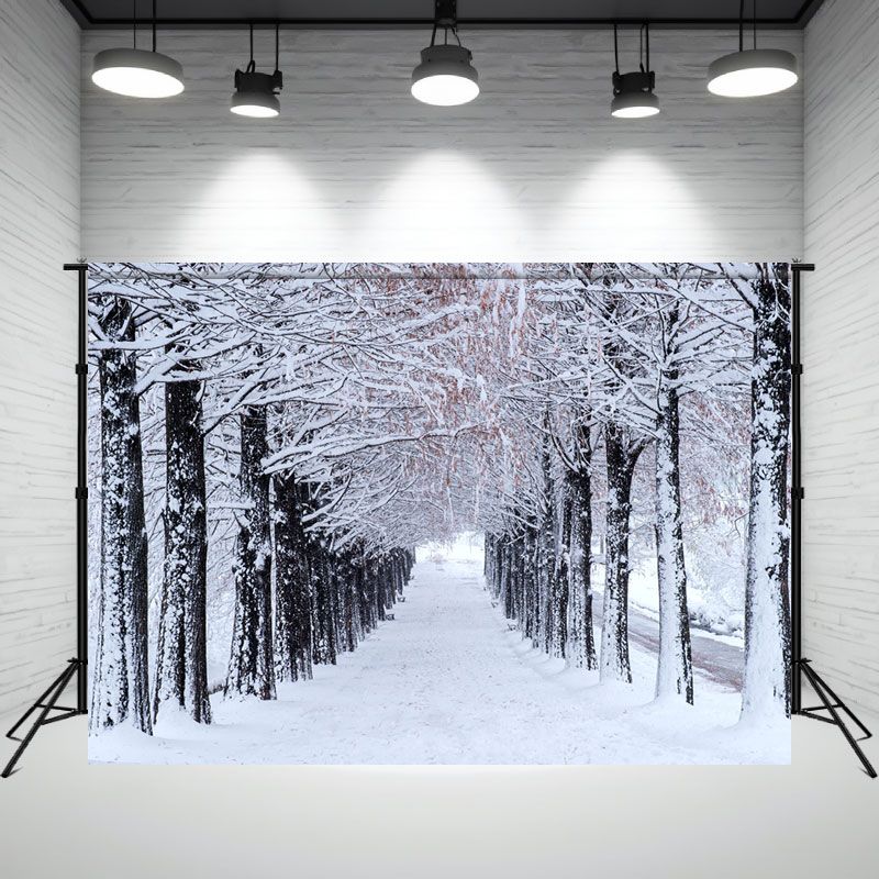 Layoris (7 Days Delivery) Snow Covered Trees Winter Photo Backdrop