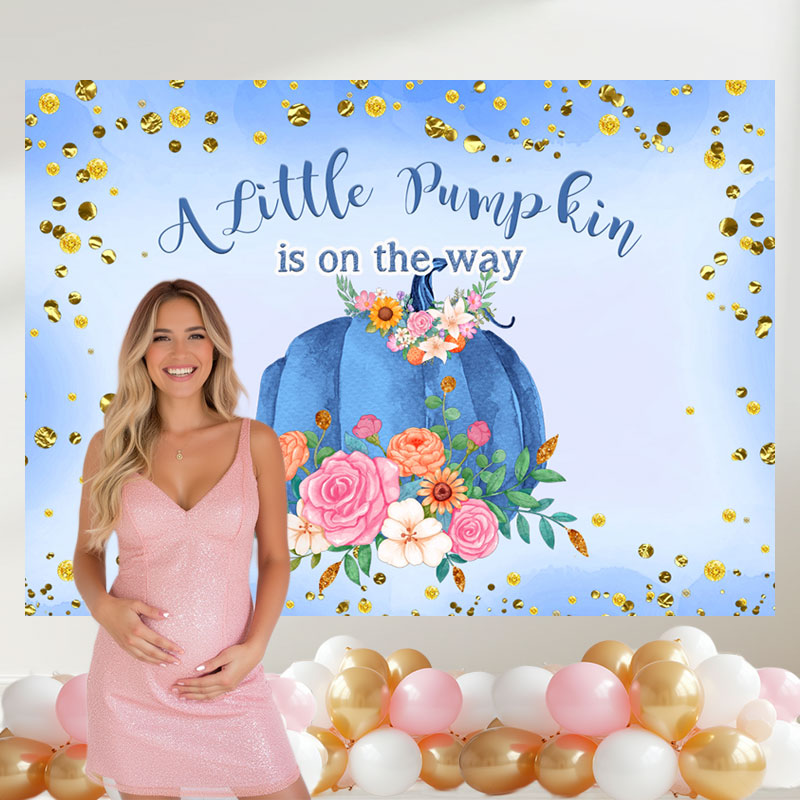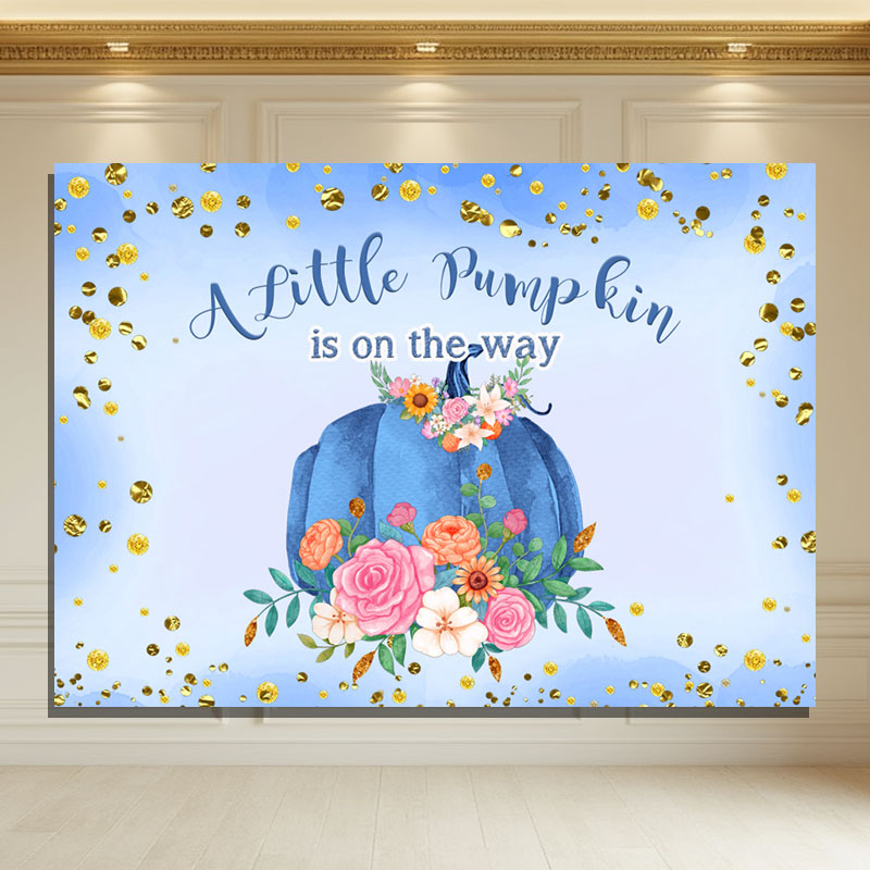 Layoris A Blue Pumpkin On The Way Baby Shower Backdrop