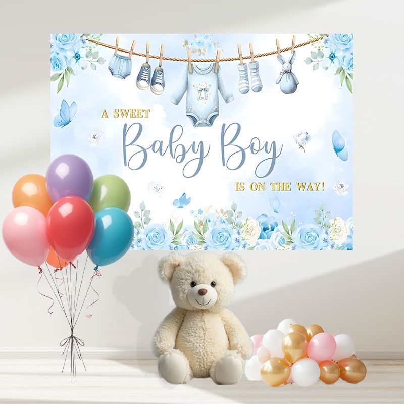 Layoris Blue Baby Shower Backdrop For Boy A Baby Boy Is On The Way