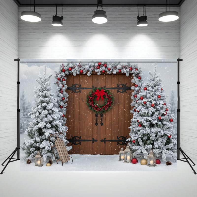 Layoris Brown Wooden Door Cedar Christmas Photo Backdrop
