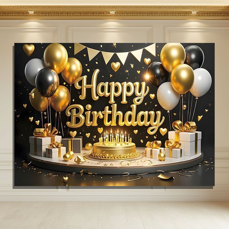Layoris Cake Balloons Grand Happy Birthday Backdrop