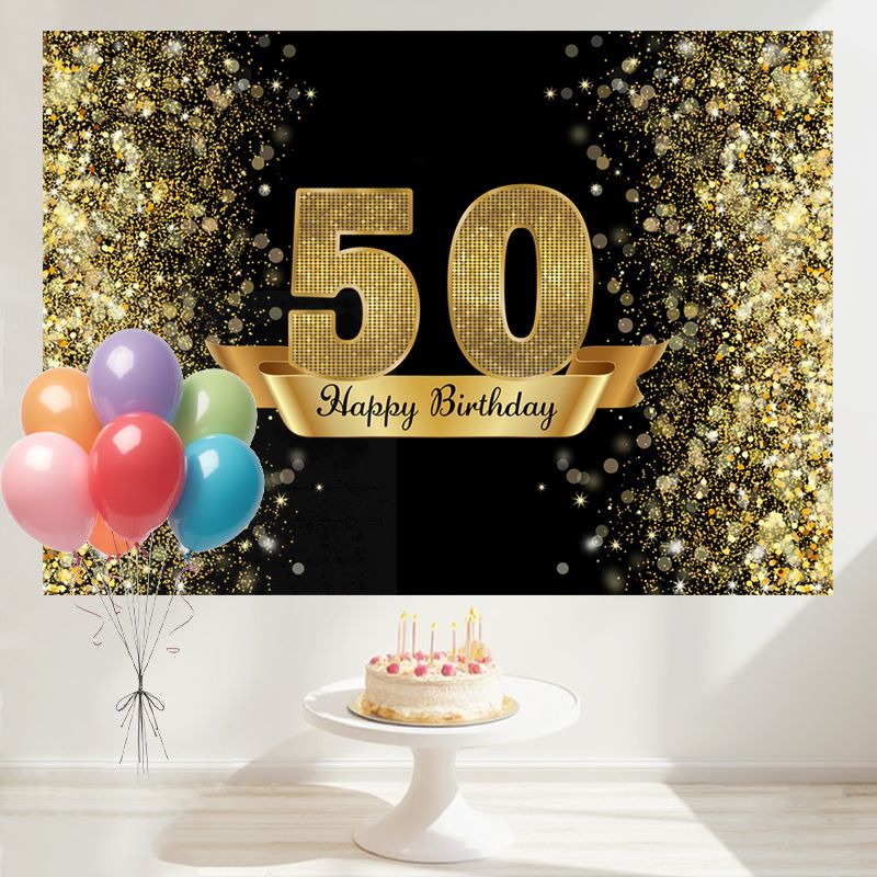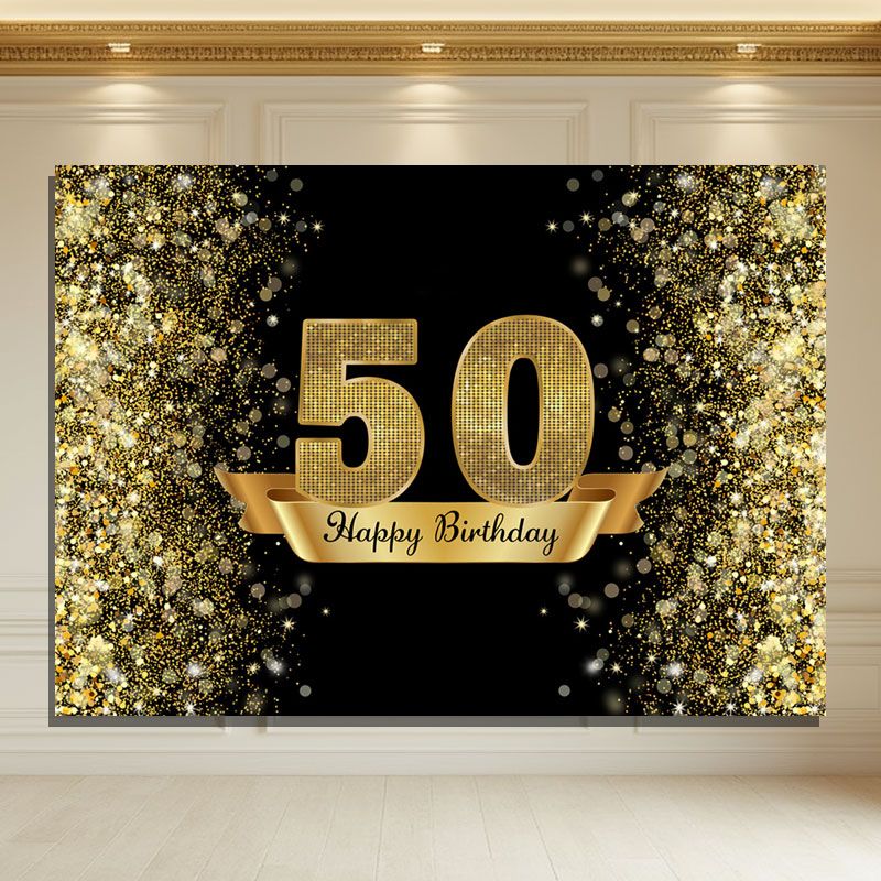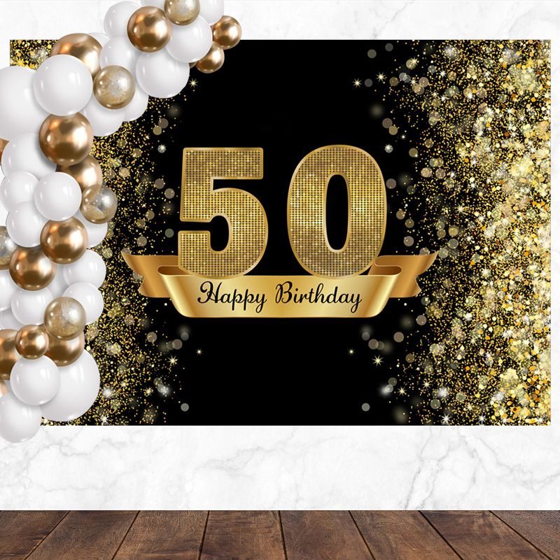 Layoris Dazzling Gold And Black 50Th Birthday Backdrop