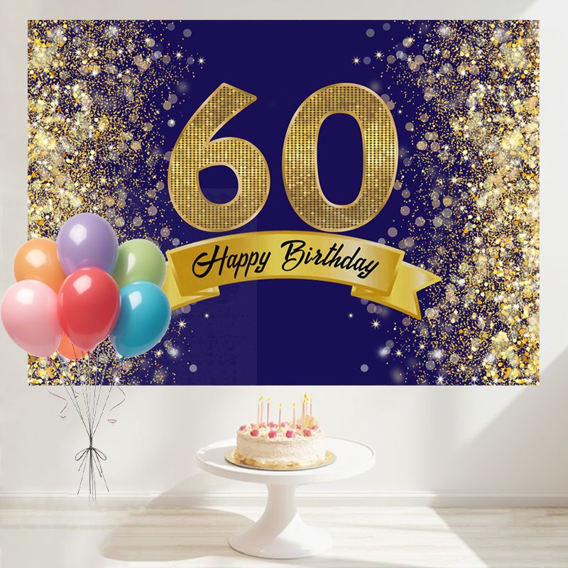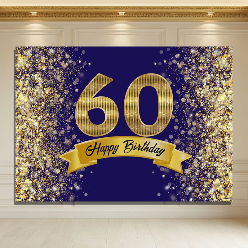 Layoris Dazzling Gold And Blue 60Th Birthday Backdrop