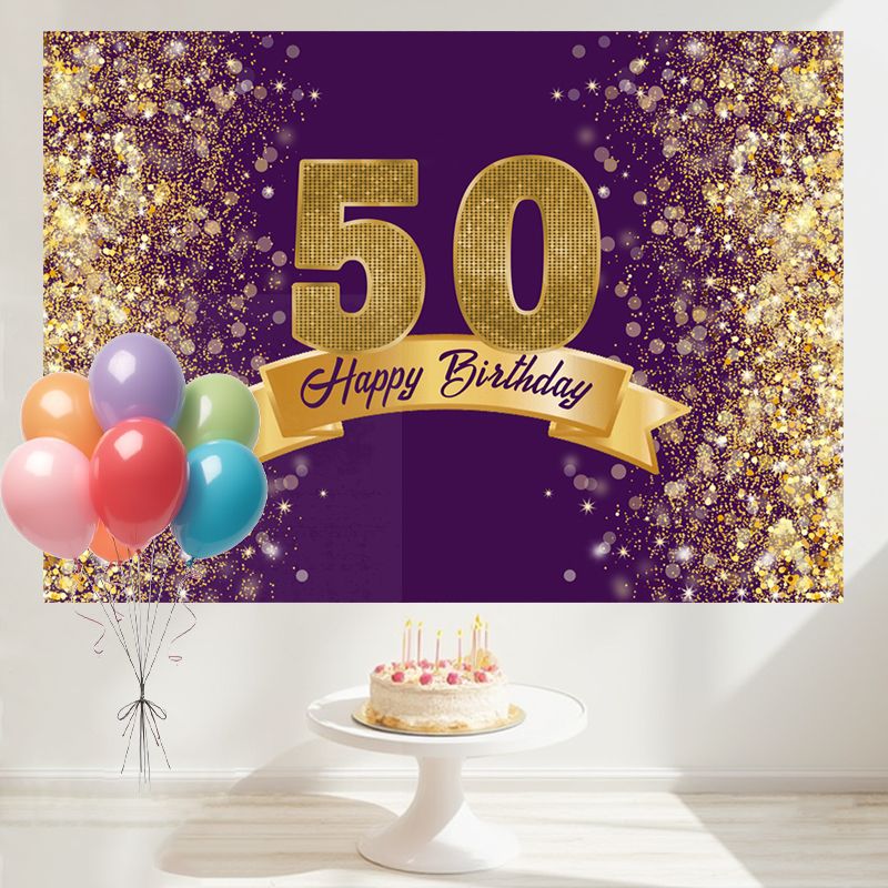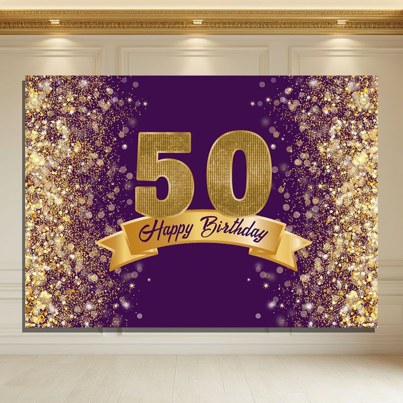 Layoris Dazzling Gold And Purple 50Th Birthday Backdrop