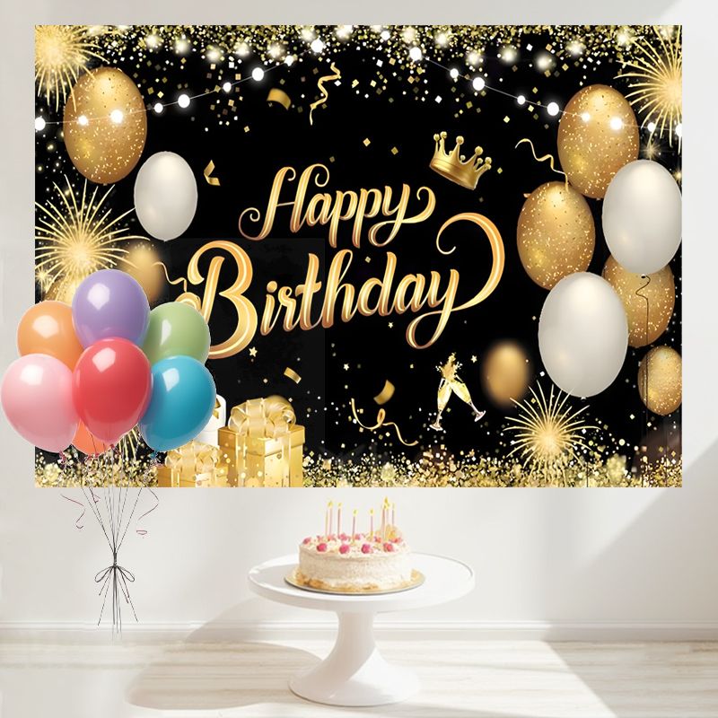 Layoris Dazzling Golden Balloon Birthday Backdrop For Ladies