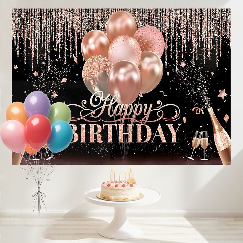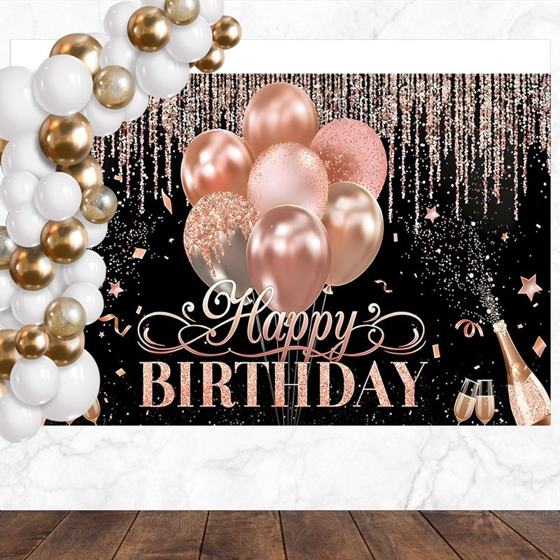 Layoris Elegant Rose Gold Happy Birthday Backdrop For Women