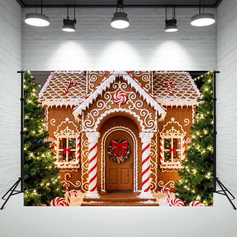 Layoris Gingerbread House Christmas Tree Holiday Party Backdrop