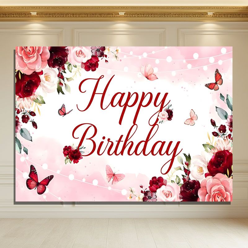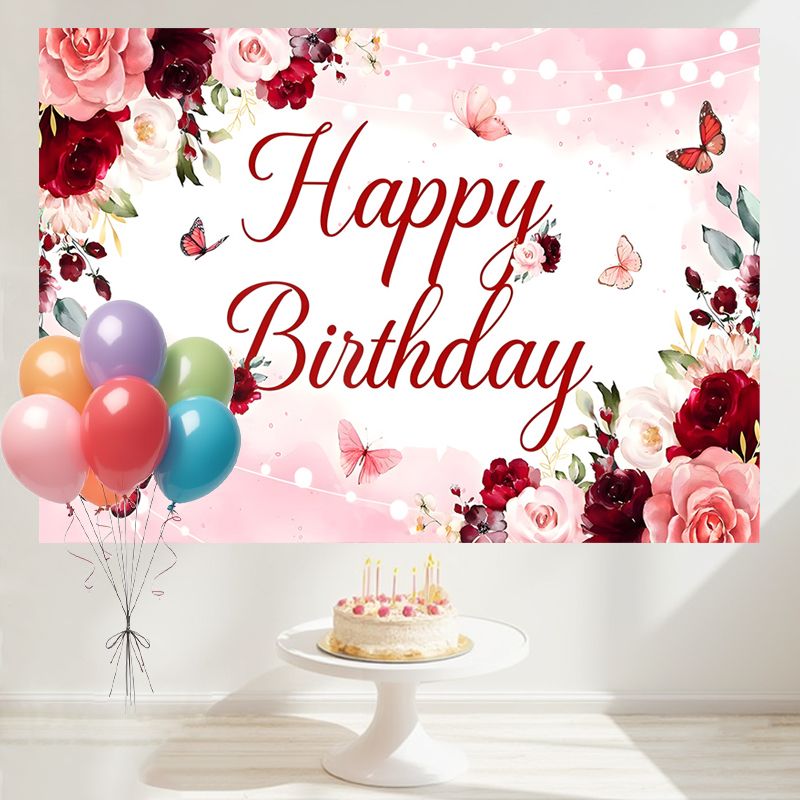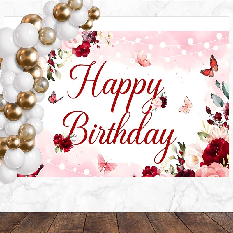 Layoris Girls Rose Gold Red Floral Birthday Party Backdrop