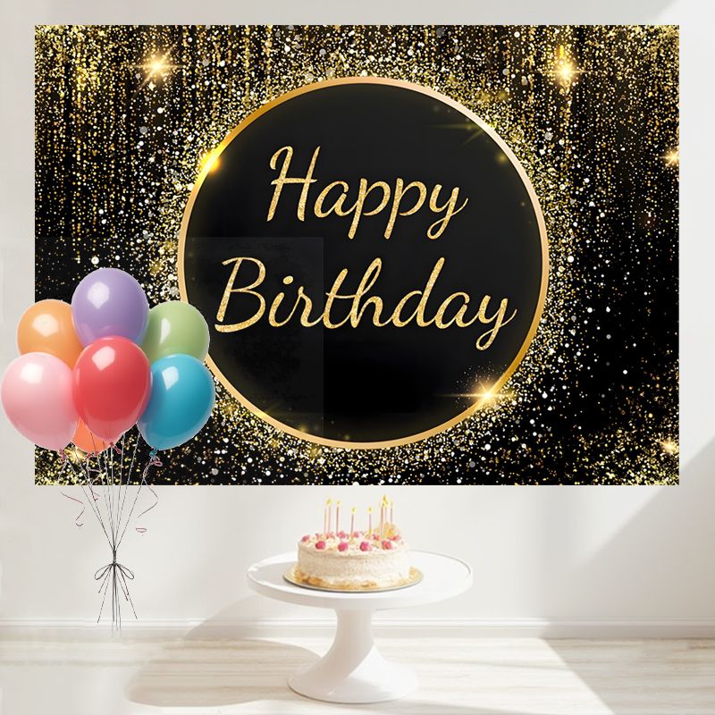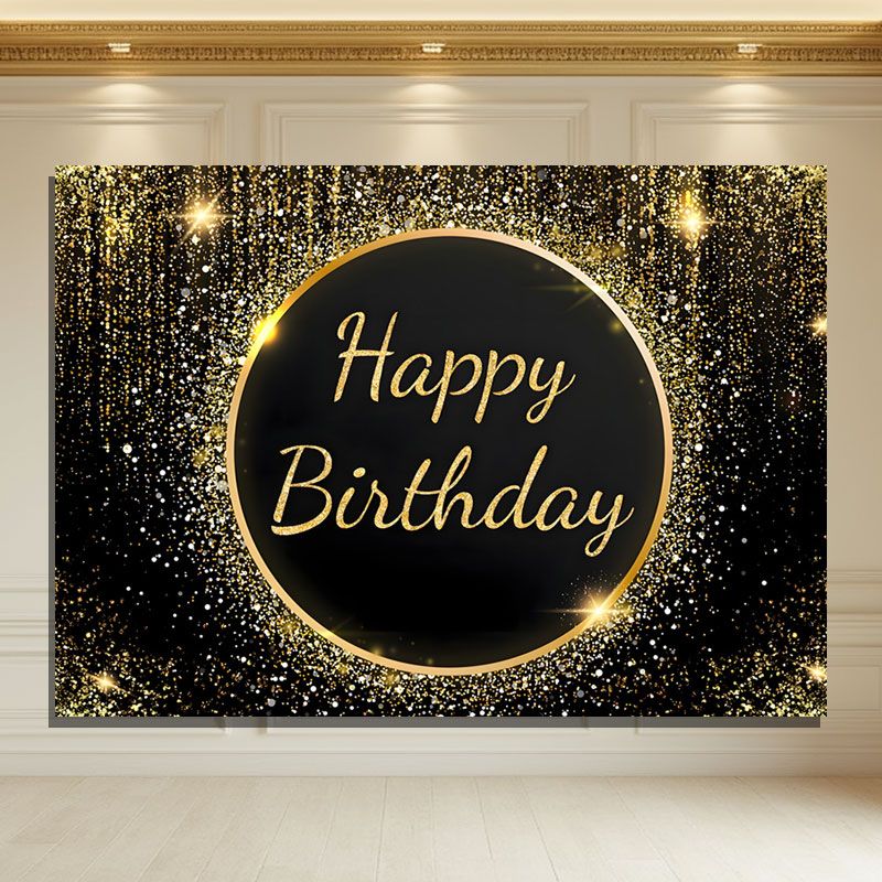 Layoris Gold Birthday Backdrop For Men Women Party Decoration