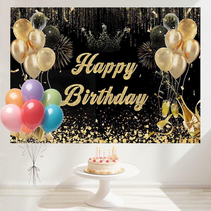 Layoris Gold Glitter Balloons Happy Birthday Backdrop
