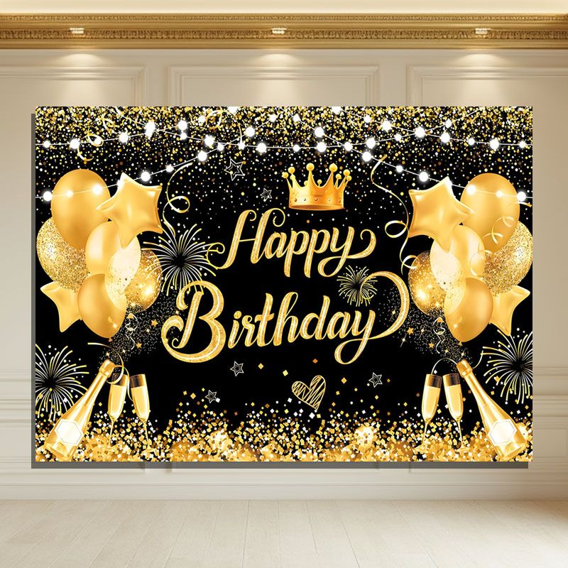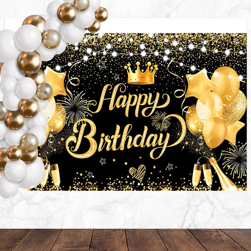 Layoris Golden Glitter Balloons Happy Birthday Backdrop