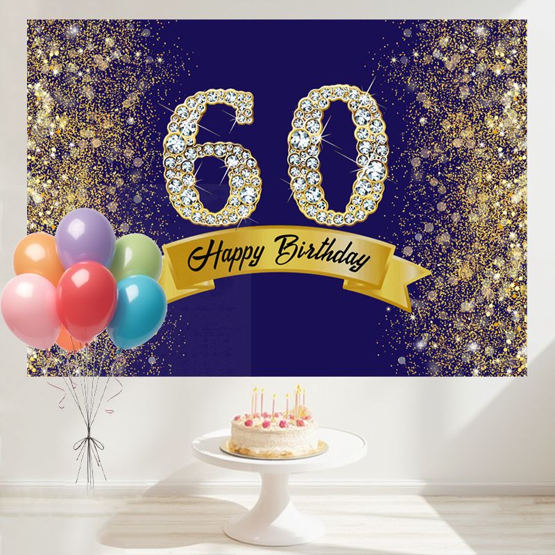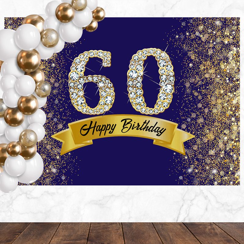Layoris Golden Glitter Diamond 60Th Birthday Backdrop