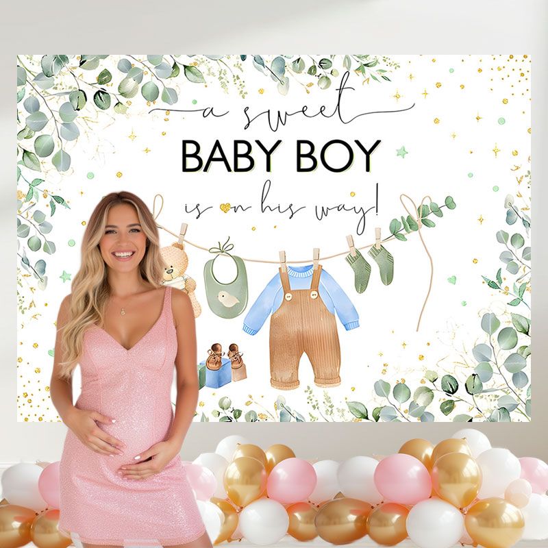 Layoris Green Leaves Baby Boy Backdrop For Baby Shower