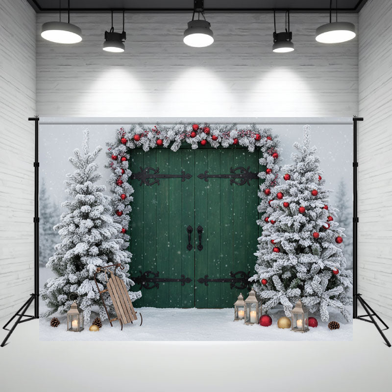 Layoris Green Wooden Door Cedar Christmas Photo Backdrop