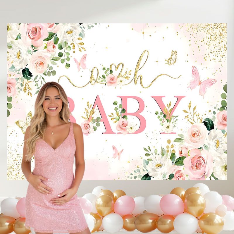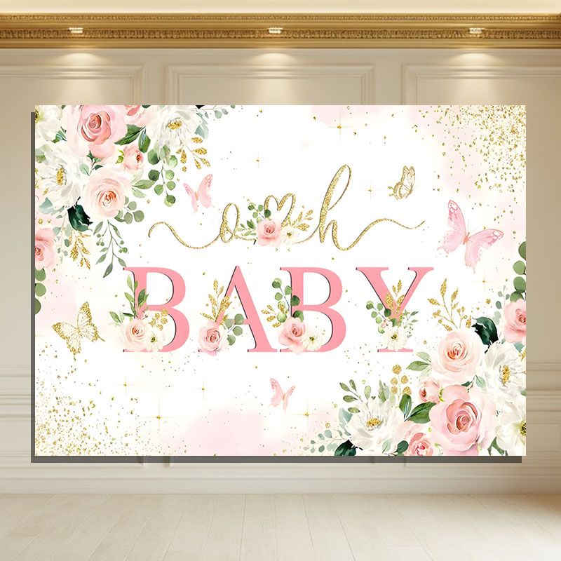 Layoris Oh Baby Butterfly Girl Baby Shower Backdrop