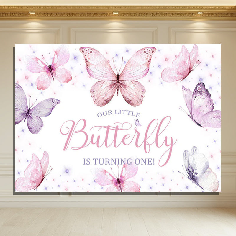 Layoris Our Little Butterfly Is Turning One Birthday Backdrop