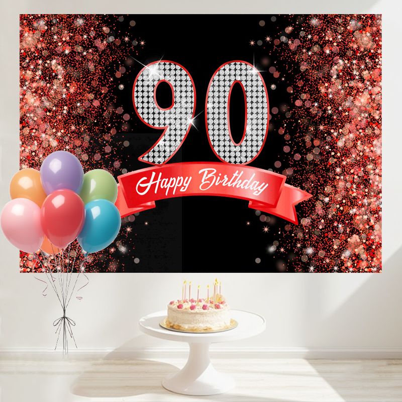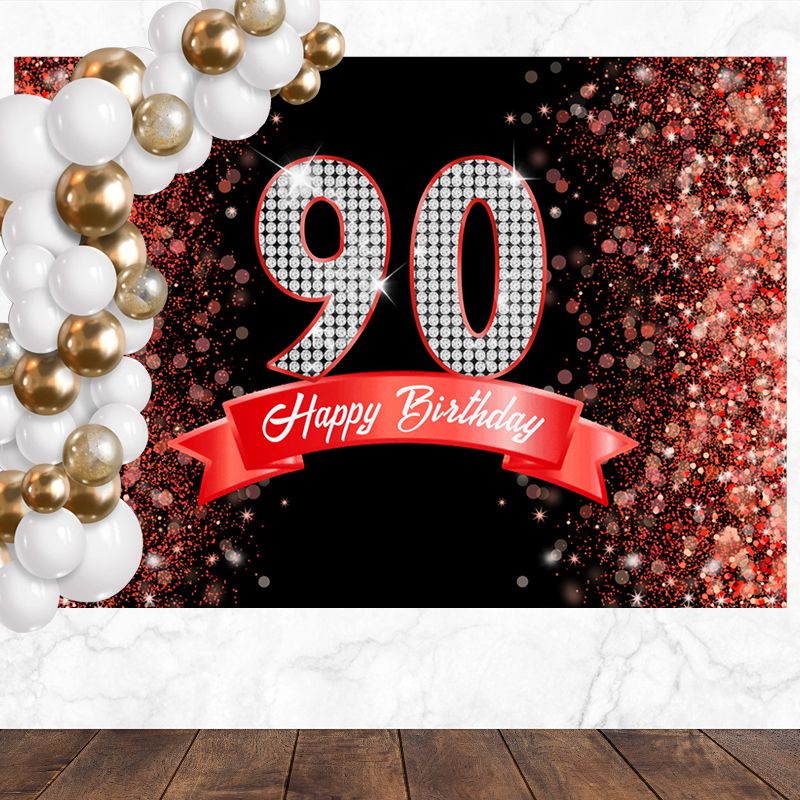 Layoris Red Dazzling Starlight Black 90Th Birthday Backdrop