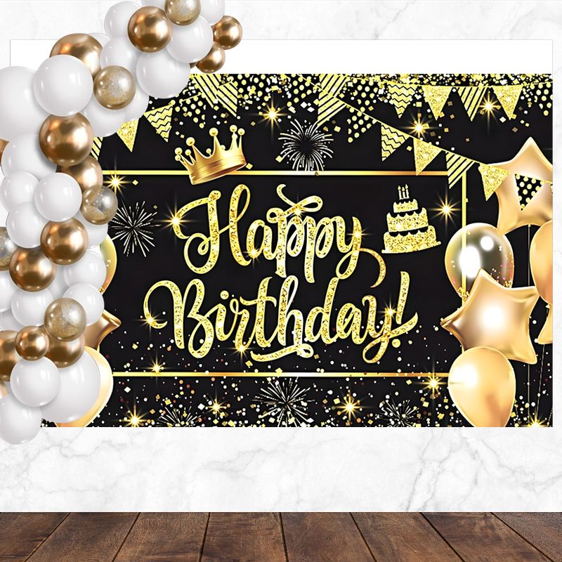 Layoris Star Balloon Glitter Golden Happy Birthday Backdrop