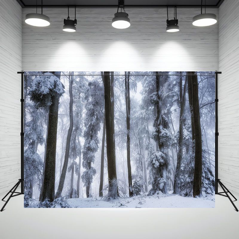Layoris Straight Trees Covered With Snow Winter Backdrop