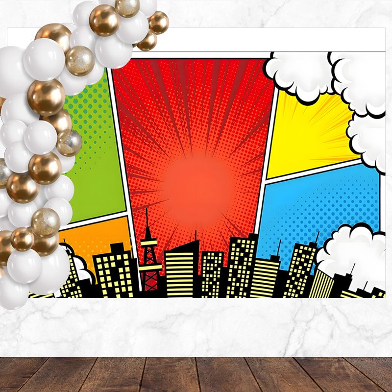 Layoris Super City Backdrop For Superhero Kids Birthday Banner