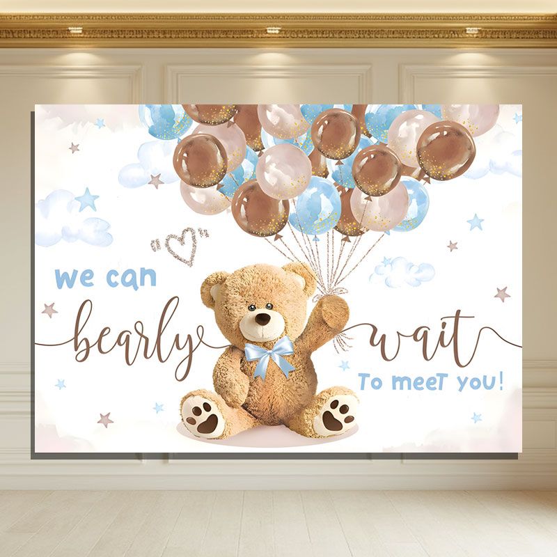 Layoris We Can Bearly Wait Brown Blue Balloons Baby Shower Banner
